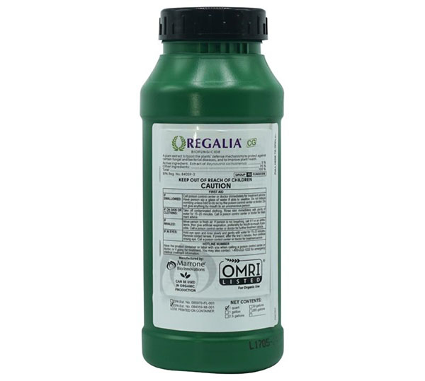Regalia® CG Biofungicide helps control powdery mildew, blight, Anthracnose and other bacterial diseases. Its natural ingredients stimulate plant immunity and help fight diseases. Use all season for prevention, control and avoid pesticides and harvest time.