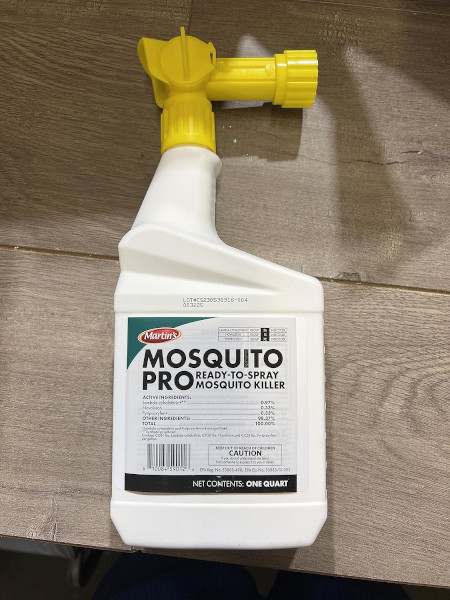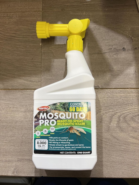 Mosquito Pro Ready-to-Spray helps kill pests such as mosquitoes, ants, fleas, and ticks. Three active ingredients are Lambda-Cyhalothrin, Novaluron, and Pyriproxyfen, which disrupt the reproduction and life-cycles of certain pests. Cover up to 8,000 square feet, killing up to 700 pests and lasts about 60 days.