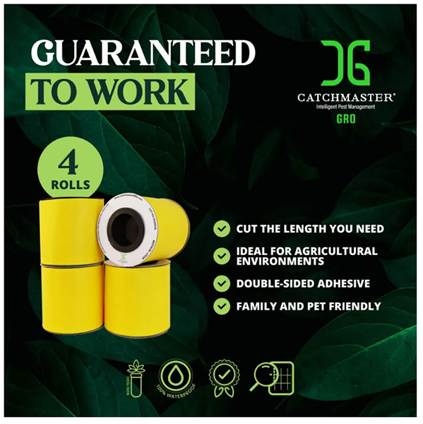 The 6" x 328' double-sided yellow monitor tape from Catchmaster allows users to effectively monitor and manage insect populations in multiple zones of greenhouses and indoor cultivation facilities.