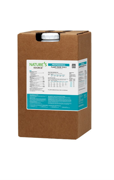 Nature's Source 10-4-3 outperforms its water soluble counterparts. This complete liquid formulation provides N-P-K and all trace elements PLUS provides plants with BioNutrition™ from its organic oilseed extract: Plant Essential Amino, Acids, Hormones, Calcium, Vitamins, Organic Acids, Proteins, and Carbohydrates. Nature’s Source is lower in salts than most commonly used water soluble fertilizers and can be used as a foliar mist without burning or stretch. It can be pulled straight from the container with compatible injection systems or dilute it according to your needs and inject a solution from your stock tank. See product label for specific rates and restrictions.