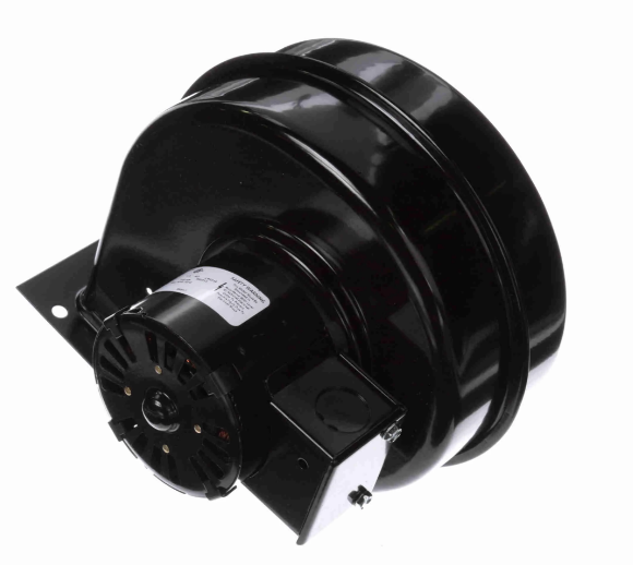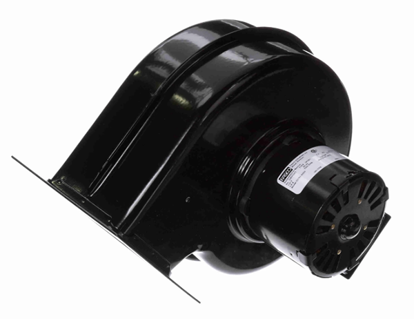A centrifugal blower with a rectangular outlet and flange. 115 Volts. 1500 rpm. Model number 50755-D500.