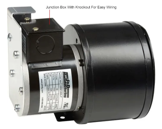 Energy efficient Permanent Split Capacitor (PSC) Inflation Blowers from J&D Manufacturing are designed to inflate double poly greenhouses for greater insulation capabilities. All models have adjustable damper doors to regulate airflow. J&D Inflation Blowers have a heavy gauge steel housing, fully enclosed wire connections, knock out junction box, brass set screw for ground wire, and a forward curve metal wheel that is balanced for smooth operation. VBM148A-P 148 CFM will inflate approximately from 2400 - 4800 square feet of greenhouse cover.