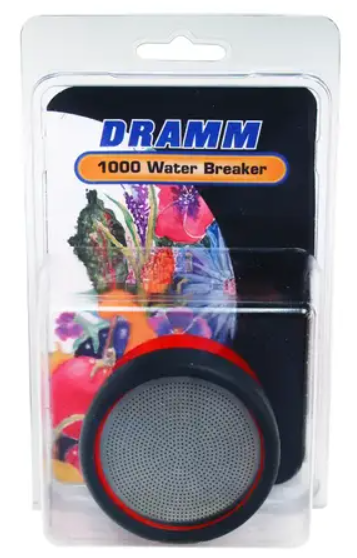 The Dramm 1000PL Red Head Water Breaker has over 1,000 micro holes with a medium pattern that creates an ultra-soft flower shower which will not disturb delicate soil or harm tender plants. Use with a Dramm In-Line Hose Filter to prevent clogging. Made in U.S.A. from ABS plastic and stainless steel. 7 GPM @ 40 PSI.