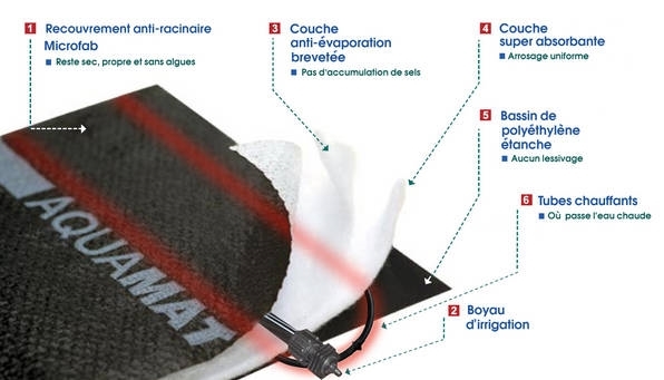 Aquathermat® from Soleno is a sub-irrigation/heating system/capillary mat that can be installed on benches, and on the ground, both indoor and outdoor. Reduces labor, equipment, water and fertilizer consumption. Safe and durable, Aquathermat can be walked and rolled on with carts. Aquathermat’s patented design includes a root and algae resistant layer, and evaporation block layer, super absorbent felt, and a total containment layer. It’s easy to install and comes in any custom size up to 11 foot x 300 foot. Sold by the square foot.