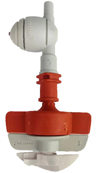 The new Netafim SpinNet Sprinkler offers drip-less operation - the plants below are not damaged from water dripping off the sprinkler. Check Valve prevents the sprinkler line from draining onto the plants below after shut-down and provides instantaneous on-off for accurate short cycle watering and misting. Sprinklers hang below the supply pipe, preventing wetting of the pipe and dripping onto the plants below. Made from the highest quality plastics with excellent Ultra-Violet (UV) resistance. Our reflective white tubing is completely opaque to prevent algae growth, UV resistant, and can withstand heat, direct sun and harsh chemicals. All sprinkler parts can be assembled and disassembled in the greenhouse without tools.