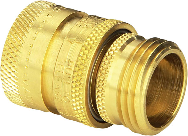 Brass click Disconnect offers a full flow pair made of heavy duty brass with a retractable collar to quickly connect or disconnect accessories.