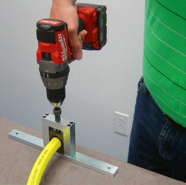 The DrammPress™ Hose Crimper provides a frame for Dramm Press Jaws.