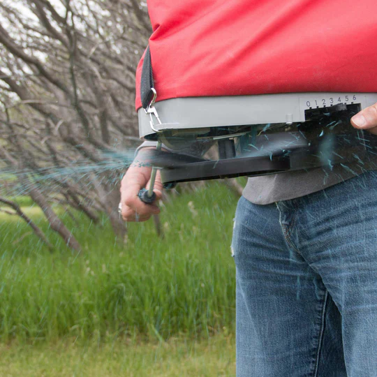 A heavy-duty, waterproof, zipper-top bag compatible with a variety of seeds and granular fertilizers. Perfect for small or hard to reach areas. Includes a heavy duty, waterproof zipper top bag (25 lb capacity), enclosed gearbox to protect components from the elements, rear baffle to keep material from contacting user and an adjustable should strap.