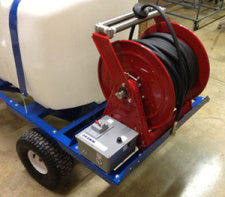 The Dramm 150’ 50 gallon Hydra SprayTrax is available in either gasoline (HYDRAGST50-150) or electric (HYDRAEST50-150). The unit comes with a variety of hose lengths (150', 200' 250') on a variable tension drag, locking reel. The SprayTrax cart is designed for maximum maneuverability with tracking axles that both turn. The SprayTrax can turn 360˚ within 7'. The HydraSprayTrax is available with either an electric motor or a 5.5 HP Honda gasoline motor.