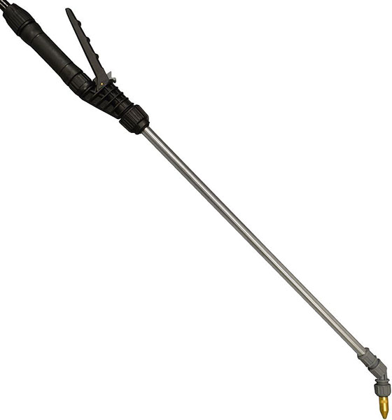 - Professional stainless steel wand with comfort grip, lock-on feature, and in-line filter.