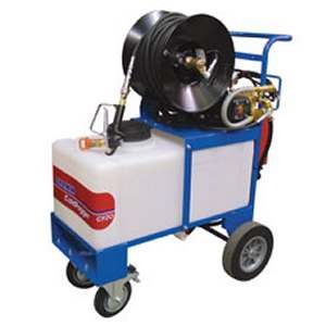 The MSO gas sprayer includes 66' Discharge Hose Trigger-Style Gun and Suction Hose Sprayer Cart and 20 Gallon Tank.