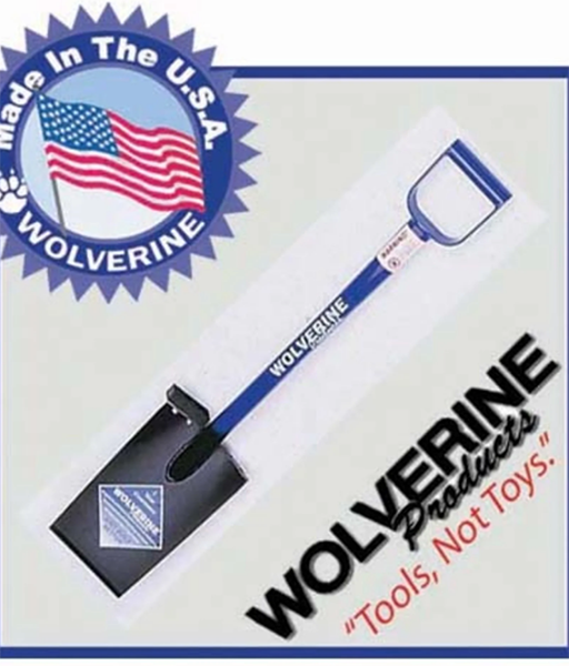 The Wolverine D handle nursery spade features a 12” long straight bottom steel blade and a 26” steel D handle.