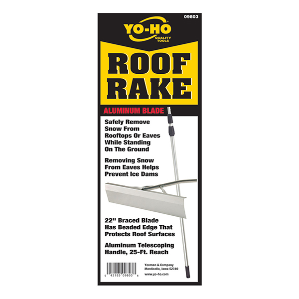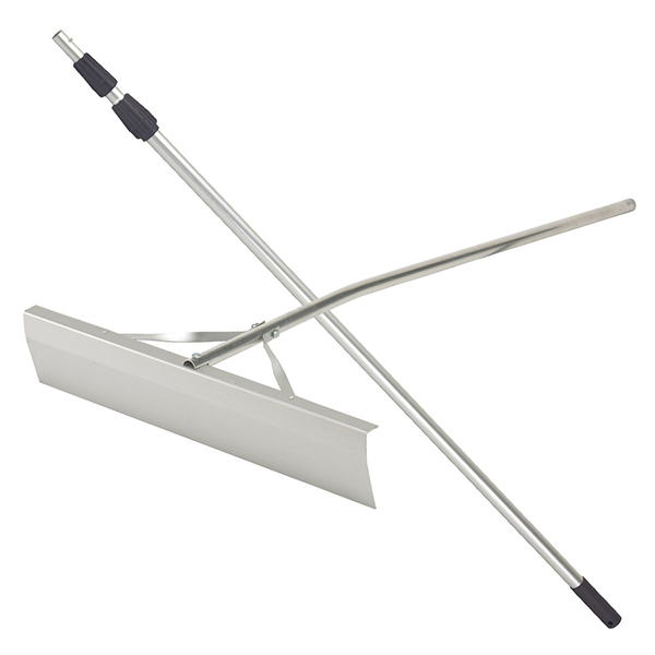 The aluminum roof rake allows you to safely remove snow from rooftops or eaves while standing on the ground. This product has a 25” braced blade with a beaded edge to protect roof surfaces and a 25’ telescoping aluminum handle.