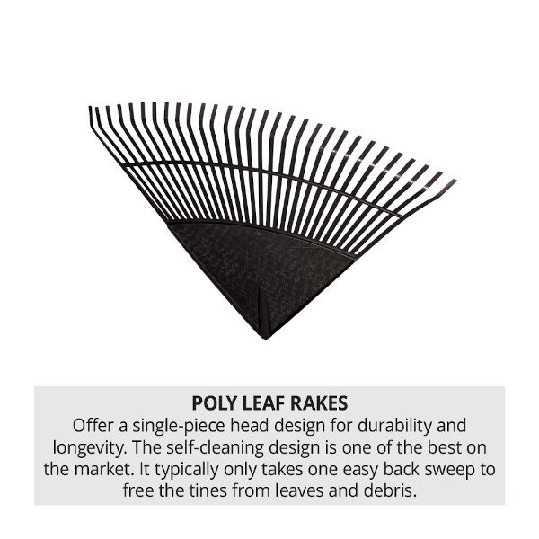 The Midwest poly lawn rake features a 32” poly head along with a 48” wood handle.