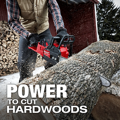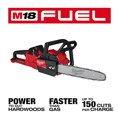 The Milwaukee® M18 FUEL™ 16" Chainsaw delivers the power to cut hardwoods, cuts faster than gas, and delivers up to 150 cuts per charge. The unit is designed to meet the performance, durability and ergonomic needs of professional landscape maintenance, power utility, and the installed M18™ user. The POWERSTATE™ Brushless Motor maintains speed under heavy loads without bogging down to outperform small gas engines and higher voltage systems. REDLINK PLUS™ intelligence ensures maximum performance and protection from overload, overheating and over discharge. The M18™ REDLITHIUM™ HIGH OUTPUT™ HD12.0 battery delivers unmatched run-time in all applications. M18 FUEL™ technology allows the unit to reach full throttle in under 1 second providing ultimate control and productivity.