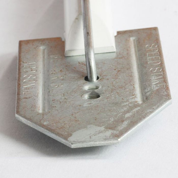 The Speed Stake® Anchoring System is an innovative, economical and secure way for fast tree anchoring installation. The Speed Stake® Installation Rod installs and sets the anchors for solid, dependable support. This patented design and recommended knotting instructions make turnbuckles, hoses and wires unnecessary. Simply attach Tree Guying Strap from the anchor to the tree. Removal is easy; just clip wire below ground level.