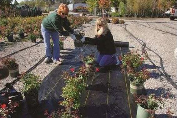 This woven polypropylene ground cover resists tearing, puncturing and weed penetration. It is ideal for greenhouses and outdoor displays or growing nursery stock - mums and is UV stabilized to last in direct sunlight. DeWitt Sunbelt has colored stripes every 12” to aid in plant alignment.