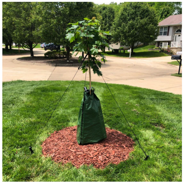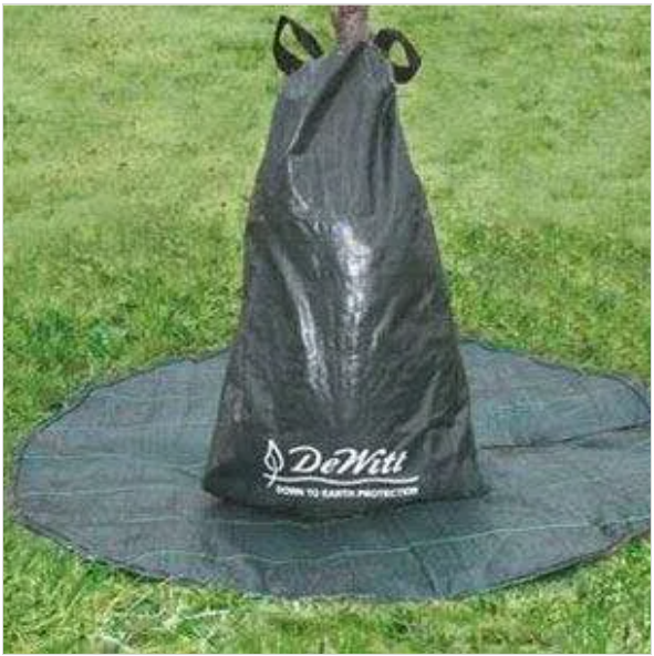 The Dewitt Dew Right Tree Watering Bag provides a drip irrigation system directly to tree roots over an extended period of time, eliminating the stress from newly transplanted trees and reducing shock. Prevents water runoff and evaporation.