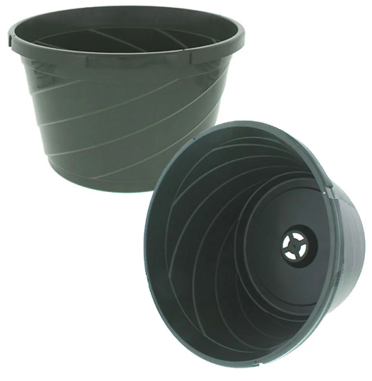 The Euro series of hanging baskets are manufactured by The HC Companies with a sleek swirl design that complements a wide array of planter designs. Saucerless baskets feature a bottom water reservoir with a center hole that allows water to drain, but helps to keep soil in place. These baskets help to accommodate the grower’s choice of either metal or plastic hangers.