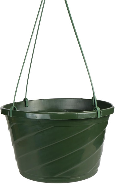 The Euro series of hanging baskets are manufactured by The HC Companies with a sleek swirl design that complements a wide array of planter designs. Saucerless baskets feature a bottom water reservoir with a center hole that allows water to drain, but helps to keep soil in place. These baskets help to accommodate the grower’s choice of either metal or plastic hangers.
