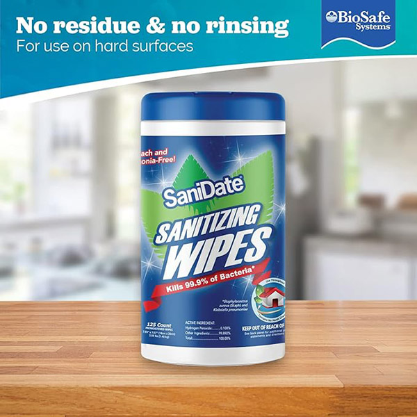 Sanidate Hard Surface Sanitizer Wipes - 125 per container