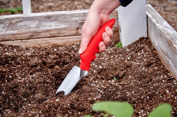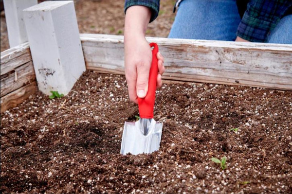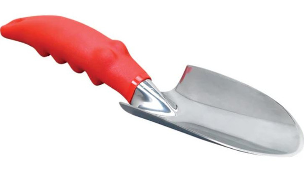 The comfort trowel features a 3” wide blade, one-piece polished aluminum alloy, and a cushioned grip.