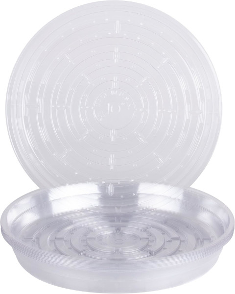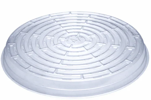 Each saucer has an airflow bottom design that does not trap moisture, dirt, etc. under the saucer. Saucers de-nest easily. They will not stick together and are available in a variety of sizes.