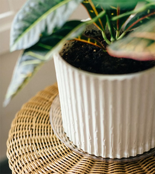 Clear vinyl saucers that have an airflow bottom design that does not trap moisture or dirt under the saucer. Saucers de-nest easily and do not stick together.