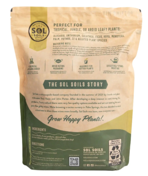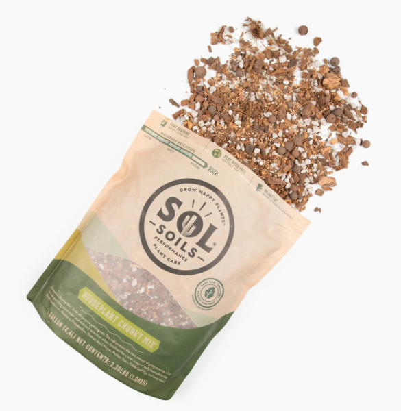 The Sol® Soils Houseplant Chunky Mix is an all-purpose, aroid, or tropical potting mix. Its organic matter helps houseplants with moisture and drainage. It is especially helpful for leafy plants.
