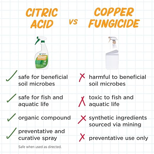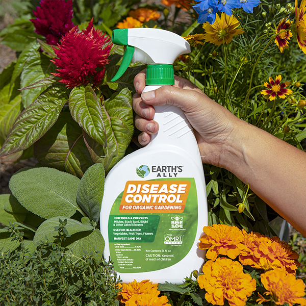A new generation of disease control formulated from citric acid, Earth's Ally Disease Control is a broad-spectrum fungicide that leaves no harmful residues and can be used up until day of harvest. For use on all plants and trees: vegetables, fruits, flowers, ornamentals, trees, and shrubs. Treats and controls powdery mildew, downy mildew, blight, canker, black spot, and leaf spot.